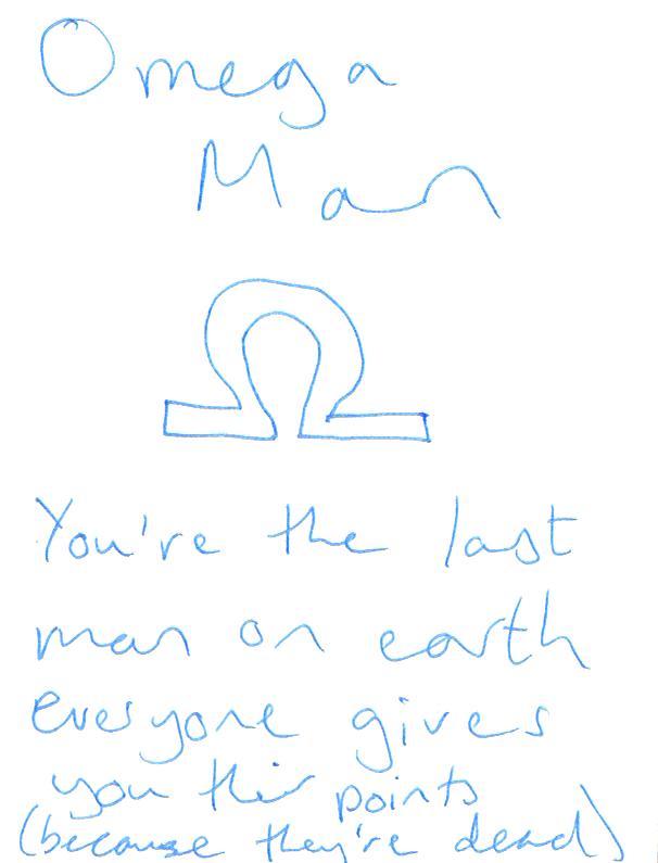 You're the last man on earth, everyone gives you their points (because they're dead) |
